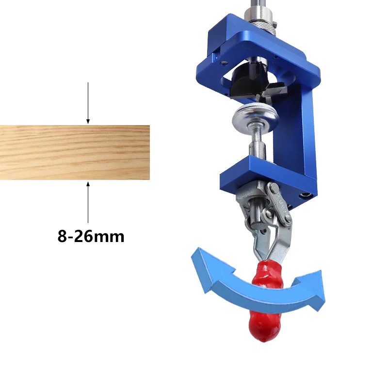 2. Закрепите деревянную доску (регулируемая 8-26 мм) и закройте ручку, чтобы зафиксировать ее