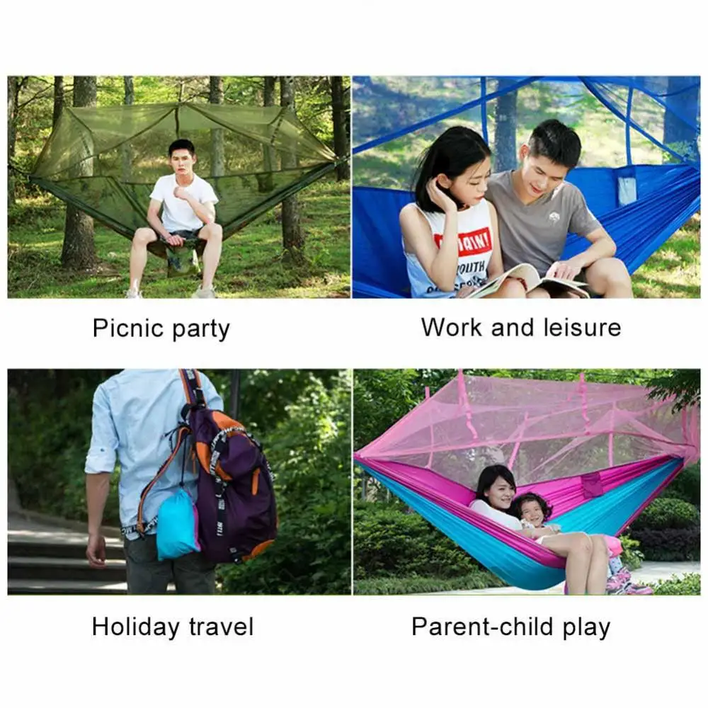Портативный уличный гамак для кемпинга, подвесная кровать с москитной сеткой, высокопрочная, парашютная ткань, качели для сна на 1-2 человек