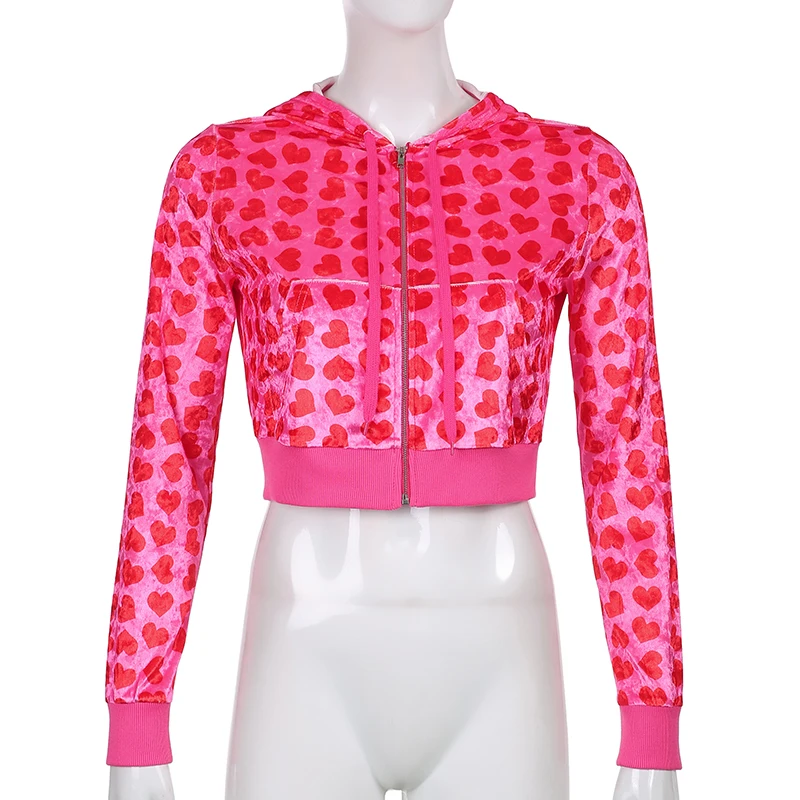 Укороченный розовый топ с принтом в виде сердца, осенняя Вельветовая куртка с длинным рукавом, бейсбольная куртка с карманами в стиле Харадзюку, зима 2021
