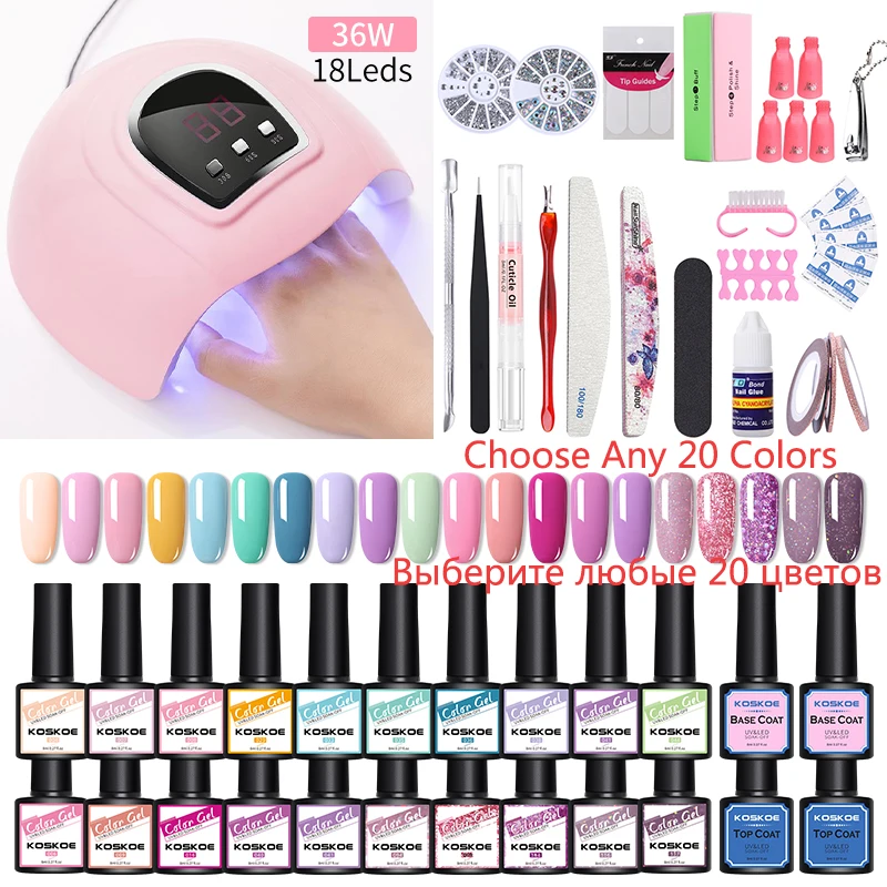 KOSKOE набор УФ-гелей уф Светодиодная лампа для сушки ногтей с 2436...