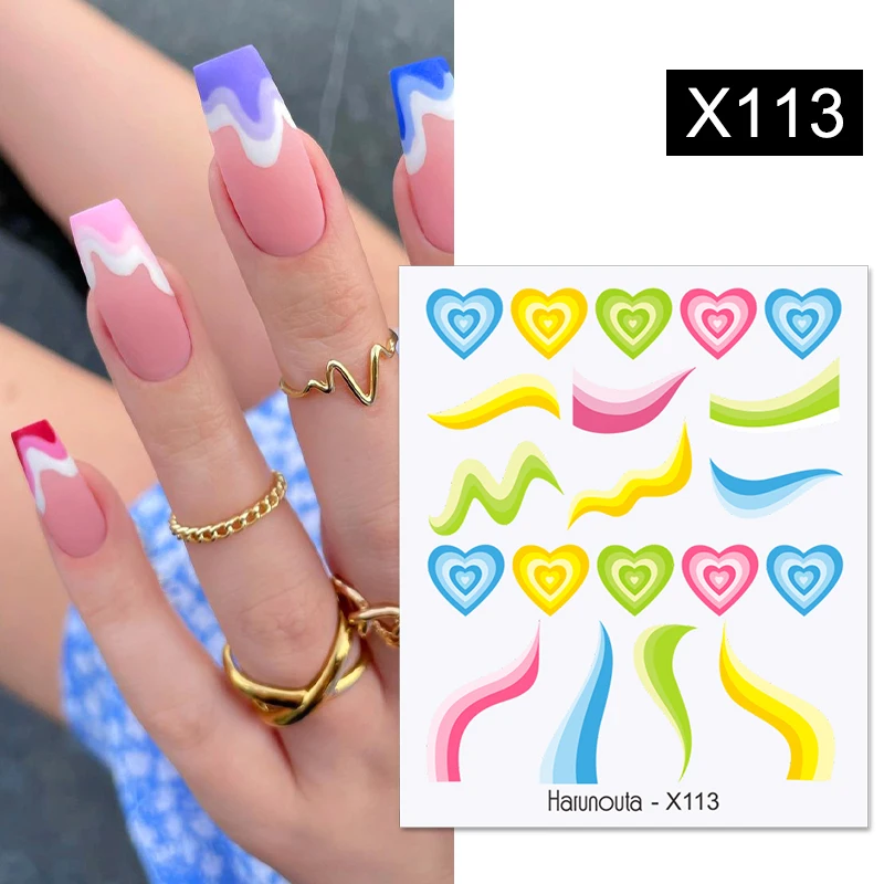 Геометрические Цветные Волнистые наклейки Harunouta с узором в виде сердца Водные Наклейки с бабочкой драконом слайдер для детской рукоделия