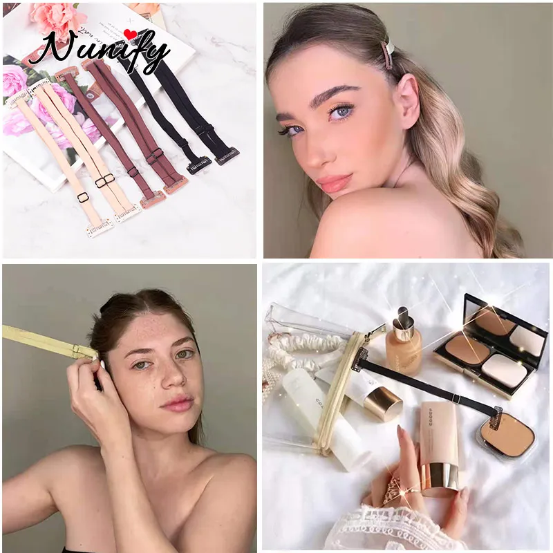 Эластичная лента Nunify для растяжки глаз, двойной ободок, с зажимами, черная, коричневая, светлая, эластичная лента для подтяжки волос, регулируемая