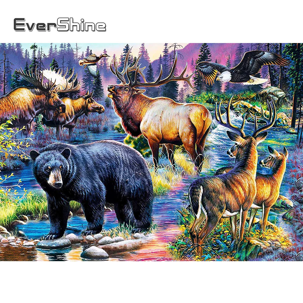 Алмазная картина сделай сам с медведем Evershine, Набор для вышивки крестиком с изображением животных, квадратная круглая вышивка олень Из алмазной вышивки, подарок ручной работы