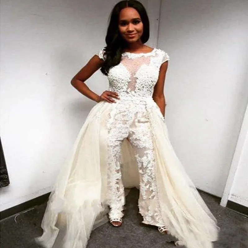 Свадебный комбинезон со шлейфом, кружевное шифоновое винтажное пляж...