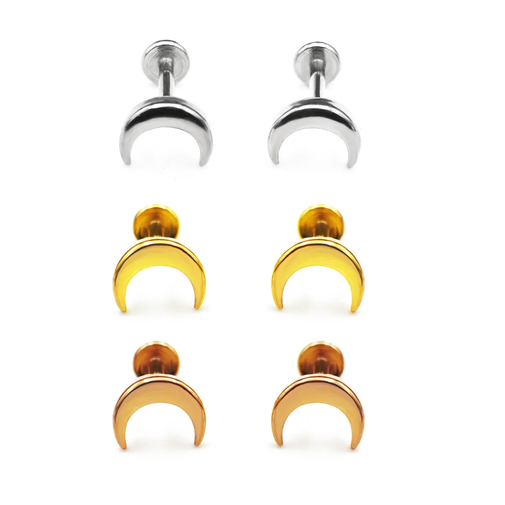 Серьги из хирургической стали с фианитами для пирсинга, ювелирное изделие для губ, Луны, губ, хряща уха, Козелка, завитка ушной раковины, серьги-гвоздики, 2 шт.