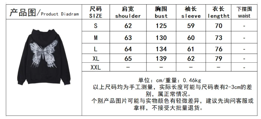 Женские толстовки с принтом бабочки гранж-панк в стиле хип-хоп толс...
