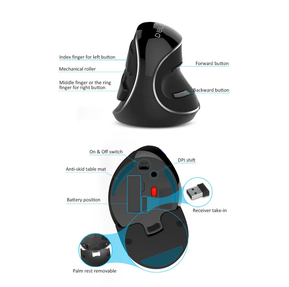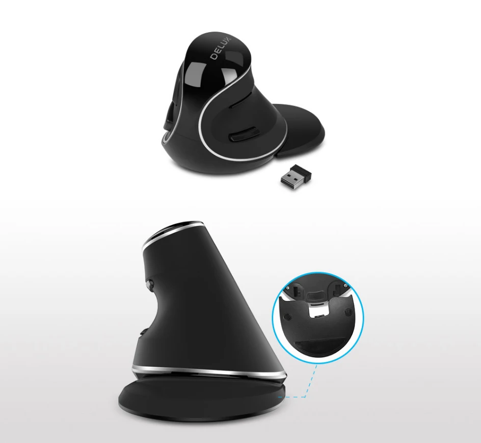 Вертикальная мышь Delux M618Plus эргономичная Вертикальная Беспроводной Мышь 800/1200/1600 Точек на дюйм 6 Функция Кнопки оптическая мышь с Съемный Упор для рук