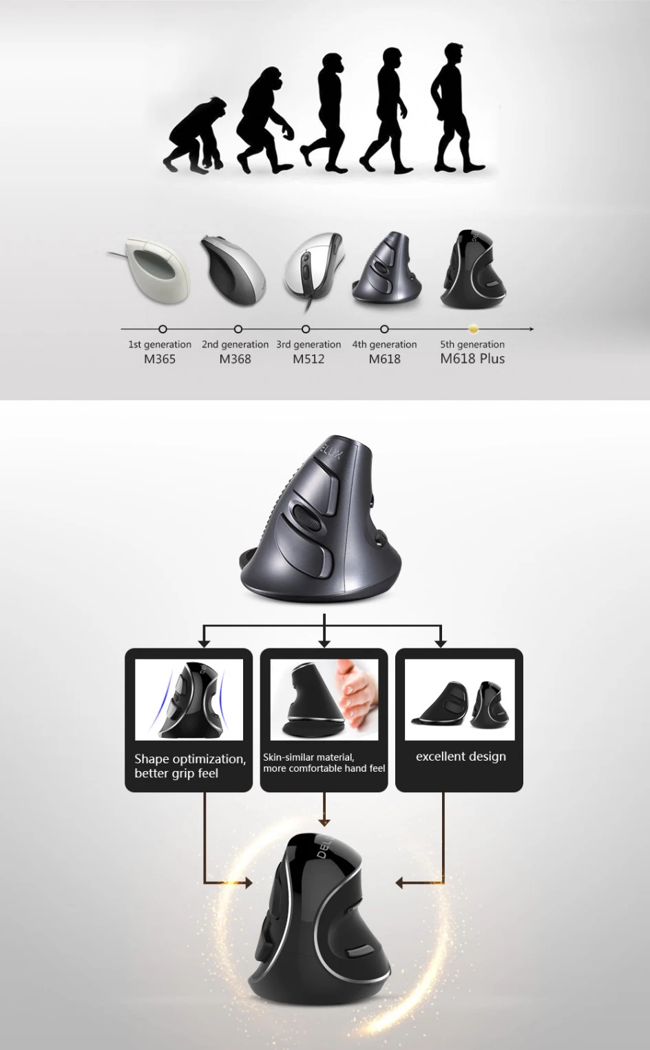 Уникальная вертикальная мышь со специальным объемным бионическим дизайном,Облегчает дискомфорт руки и ощущение жесткости,Позвольте вам попрощаться с «мышкой».