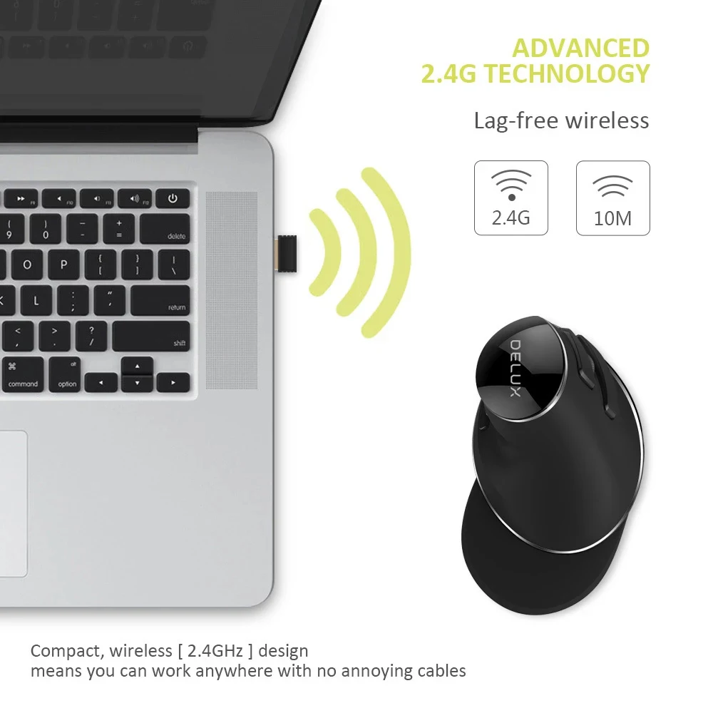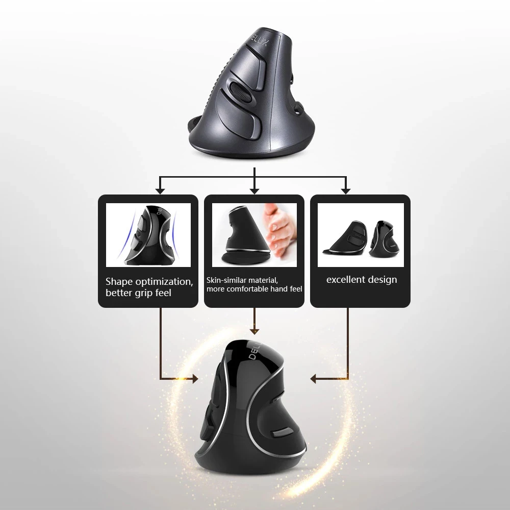 Delux M618 Plus беспроводная эргономичная Вертикальная беспроводная мышь 2,4G с захватом, оптическая мышь с анти-мышью, стильная ручная офисная мышь для ПК