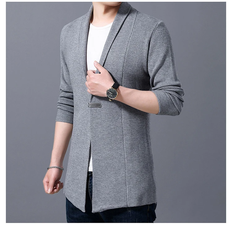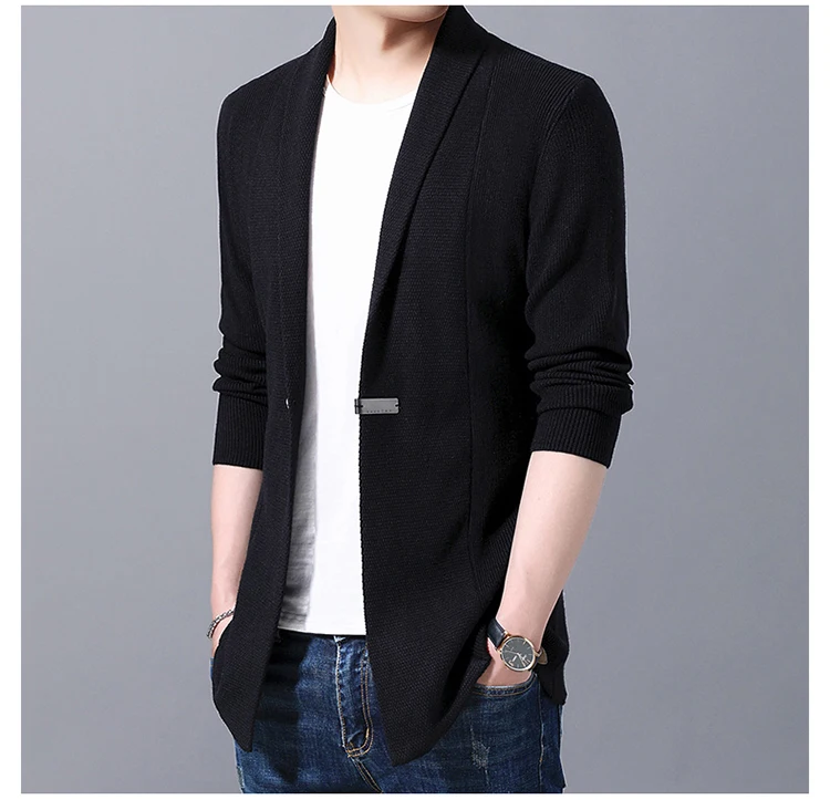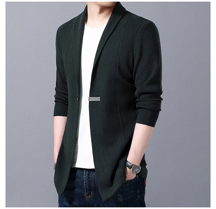 Мужской высококлассный деловой Повседневный однотонный тонкий кардиган средней и длинной длины, куртка, свитер, мужская Трикотажная ветровка, весна и лето