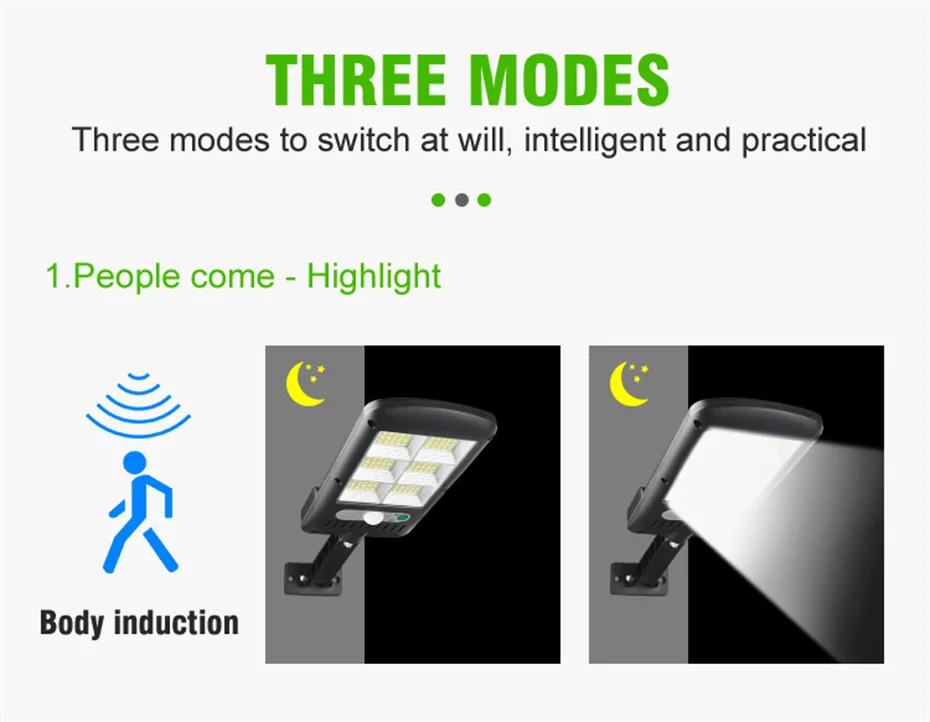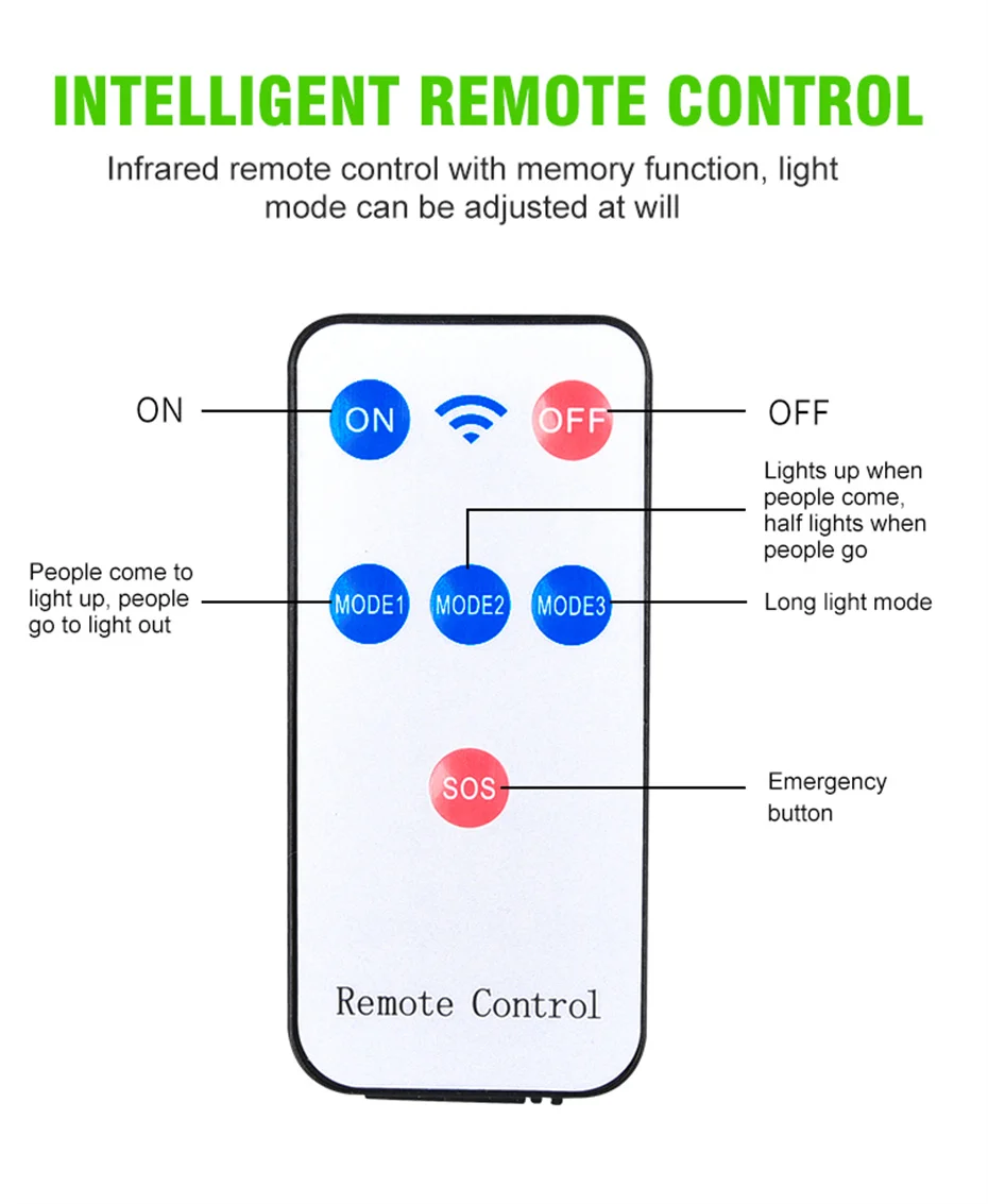 2. Датчик движения PIR: чувствительный светильник датчика PIR может обнаруживать движение людей от 3 до 5 м. Светильник будет автоматически включаться и выключаться.