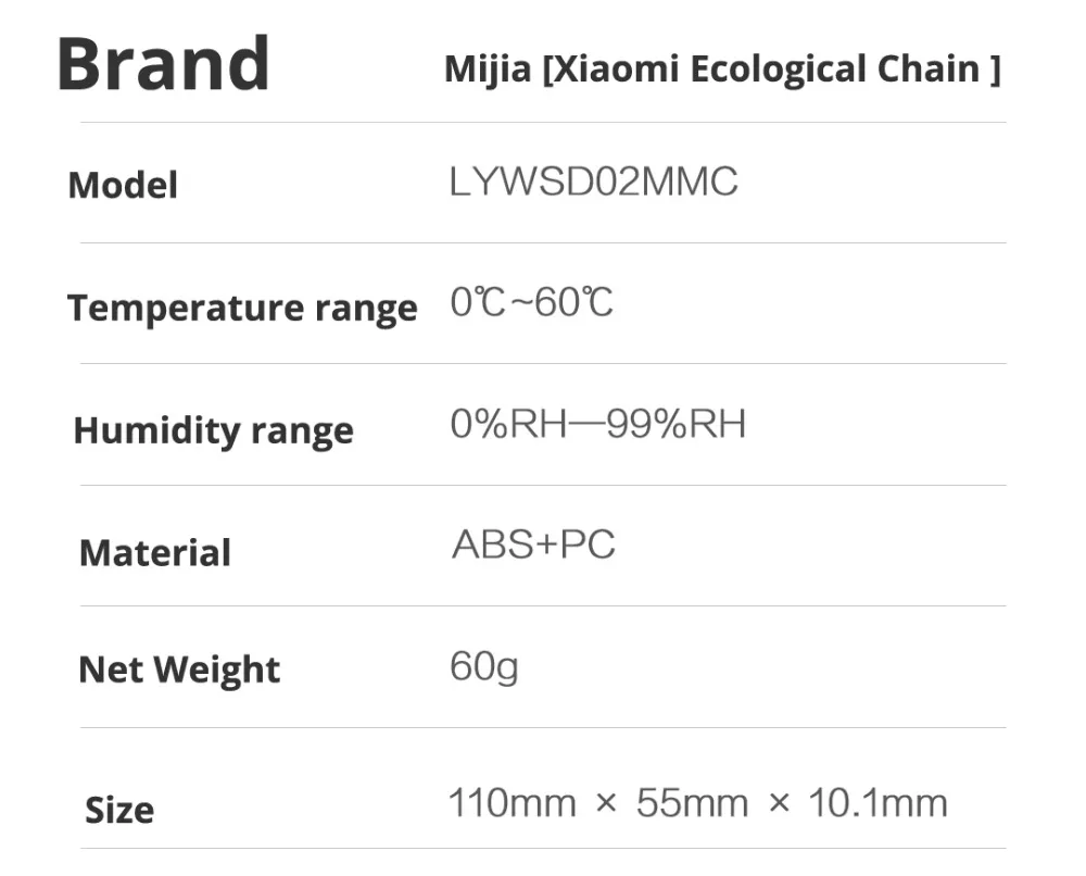 Номер моделиXiaomi Mijia Digital Hygrometer
