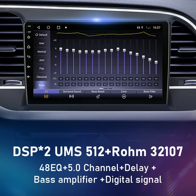 Встроенный DSP 48 эквалайзерОт 20 Гц басов слишком 20 кГц Диапазон высоких частот. Есть в общей сложности 48 рычагов регулировки, что означает, что есть больше уровней регулировки параметров звука