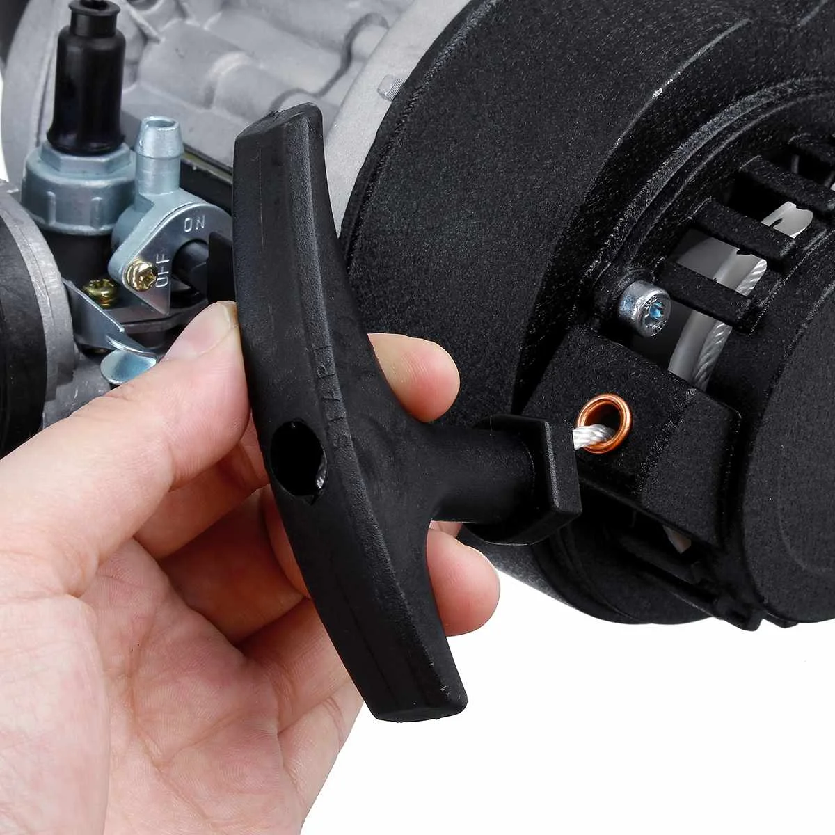 Спецификация:Название продукта: двигатель пуска тягиТип: одноцилиндровый, 2-х тактный двигатель с воздушным охлаждениемМатериал: металлЗажигание: CDIРазмер двигателя: 49cc49cc: центробежная муфтаСмещение: 49CCРежим запуска: ручной стартерРекламный выдвижной ручной стартер: одноцилиндровый, 2-х тактный двигатель с воздушным охлаждениемСцепление: влажная мульти-пластинаСистема передач: центробежная муфтаРазмер двигателя: 250 мм X 220 ммРасстояние крепления снизу (ширина): 85 ммРасстояние крепления снизу (длина): 67 ммРазмер двигателя: 250 мм X 220 ммПодходит: карманный велосипед, мини-байк, квадроцикл или скутер