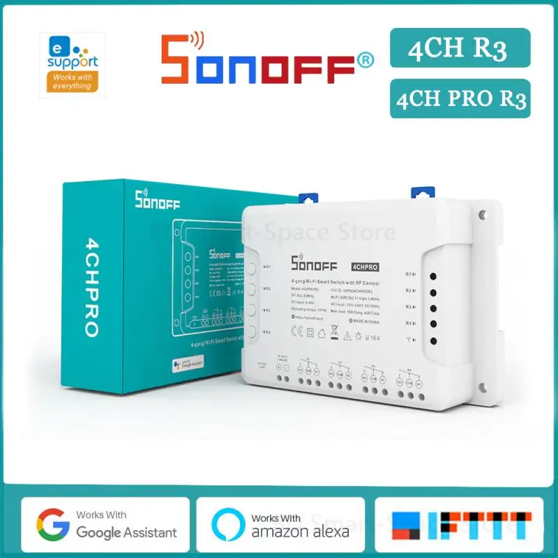 Смарт-выключатель SONOFF R3 4CH PRO R3 4 Gang Wifi, модуль сделай сам для умного дома, дистанционное управление через приложение eWeLink, работает с Alexa Google Assistant