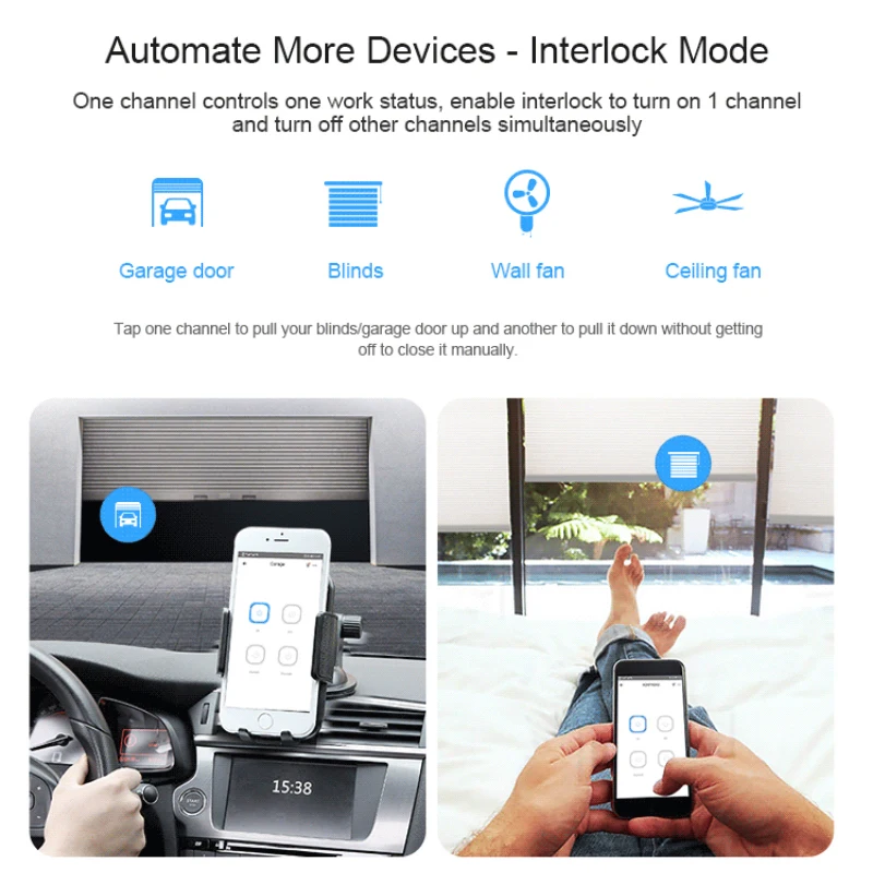 Умные переключатели SONOFF 4CHR3 is 4-gang DIY Wi-Fi вы можете включить режим самоблокировки, чтобы включить/выключить 4 бытовые устройства удаленно состояние устройства синхронно отображать запланированные/таймеры обратного отсчета делитесь контролем, поддерживает настройку питания статус работает с Amazon Echo, echo Dot, Amazon Tap работает с Google Home, Google Nest работает с IFTTT