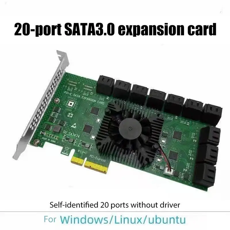 Совершенно новый чип ASm1064, 2024 порта SATA 3,0 на PCIe, плата расширения PCI Express SATA, адаптер SATA 3, конвертер с радиатором