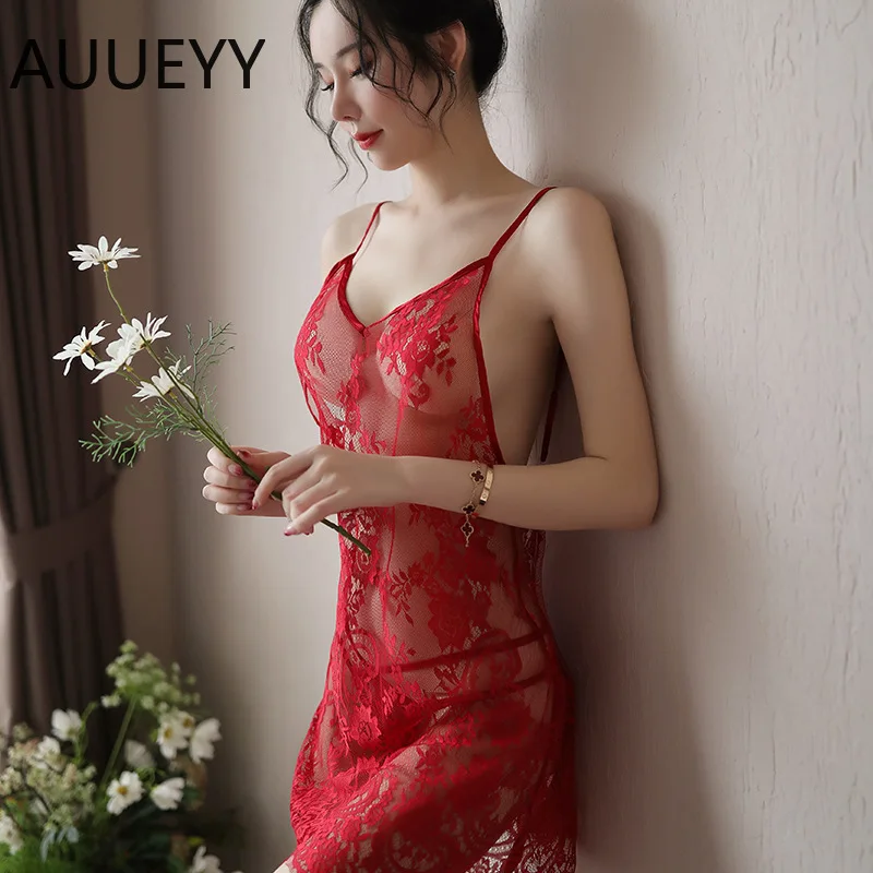 Женская ночная рубашка Сексуальная кружевная прозрачная комбинация ...