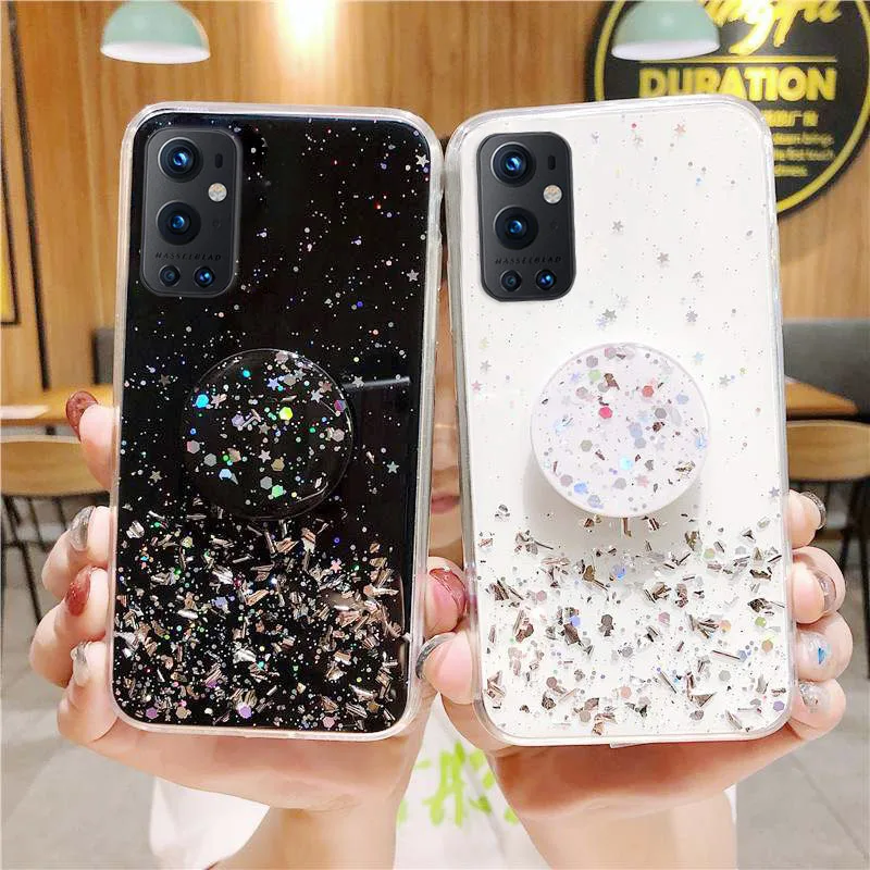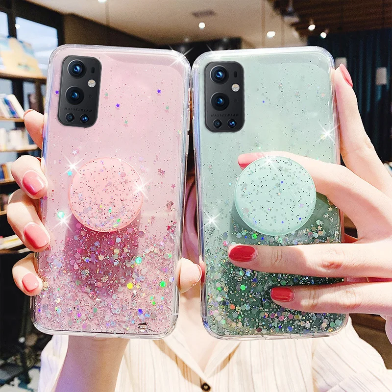 Мягкий силиконовый чехол-подставка для OnePlus 9 Pro, чехол сверкающий с блестками дюйма, 6,7