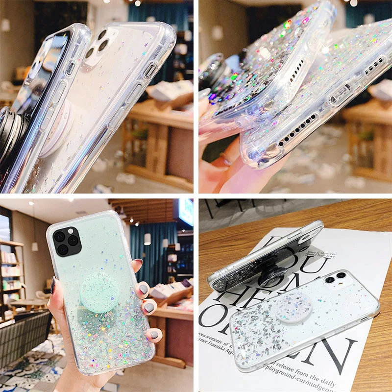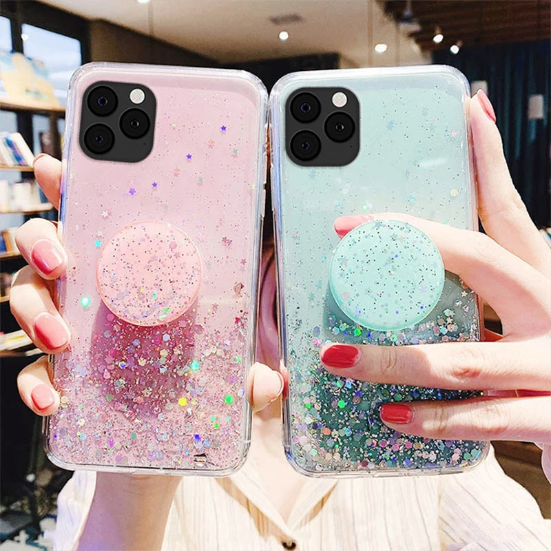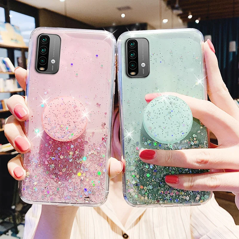 Чехол для Redmi Note 9, чехлы с блестками для Xiaomi Redmi Note 10, 9 Pro, 8 T, 7, 9 S, 9C, NFC, 9A, 10X, K40, K20, чехол с 3D мягким блестящим держателем, чехлы