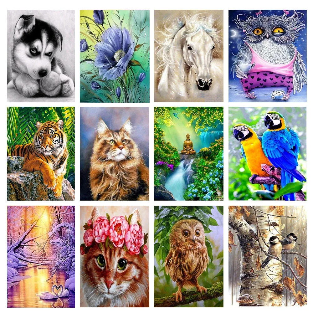 5D алмазная живопись сделай сам, полный пейзаж, животные, наборы для вышивки крестиком, Алмазная мозаика, искусство, вышивка, картина, круглая, украшение для дома