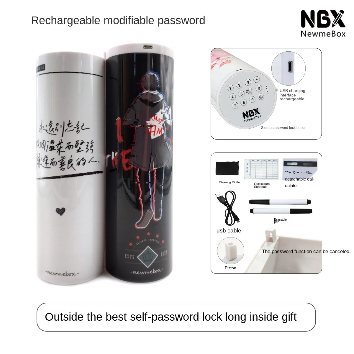 Цилиндрический чехол для карандашей, с кодовым замком, с USB-зарядкой