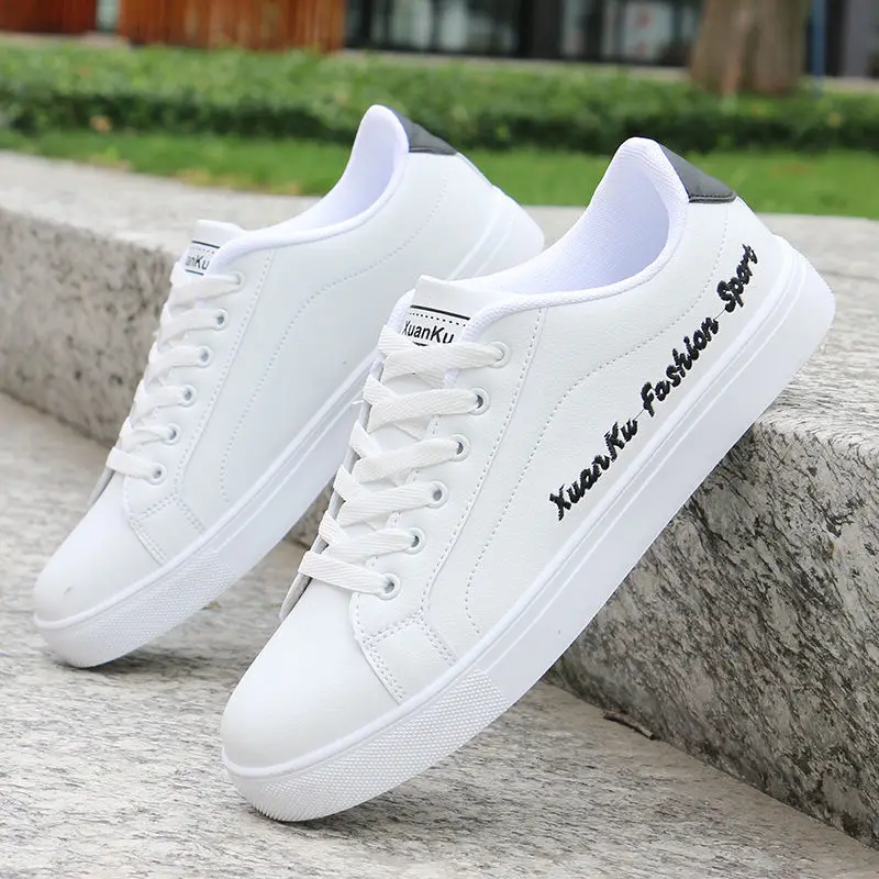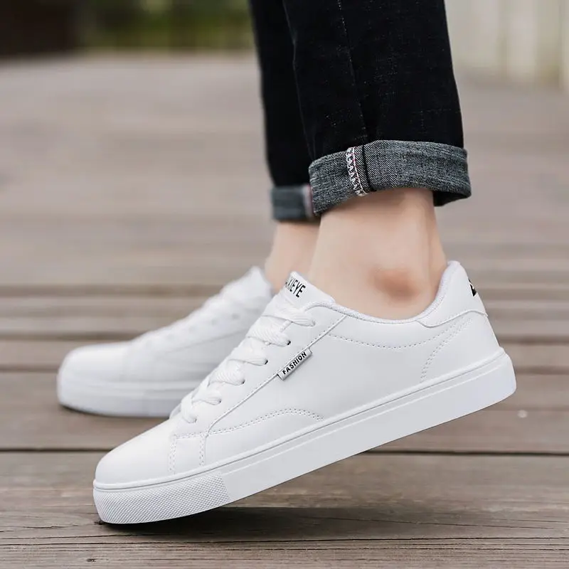 Новая модная белая кожаная обувь, Мужская теннисная обувь с вулкани...