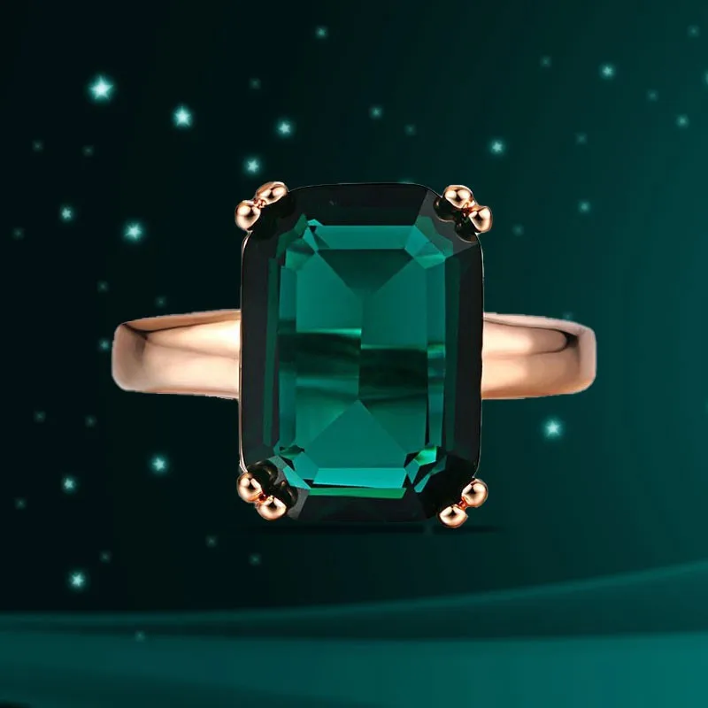 Кольцо обручальное с изумрудом, простой атмосферный аксессуар для банкета вечерние НКИ, свадьбы, годовщины