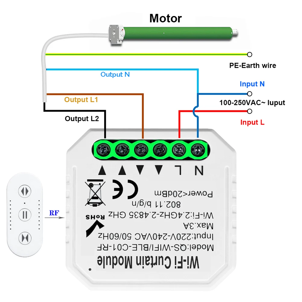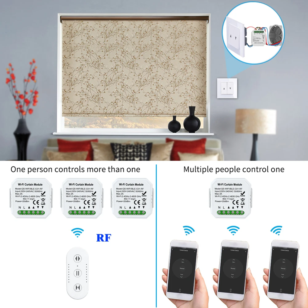 Этот продукт представляет собой интеллектуальный модуль модификации переключателя штор. С помощью этого продукта вы можете преобразовать свой традиционный переключатель штор в интеллектуальный. Прост в эксплуатации и использовании, имеет длительный срок службы. Давайте попробуем, это не подведет. Особенности: Этот продукт можно использовать для преобразования вашего традиционного переключателя в Интеллектуальный переключатель и реализации интеллектуального контроля, чтобы вы наслаждались очарованием технологий. Дистанционное управление через приложение: После правильного подключения к приложению Tuya вы сможете удаленно управлять шторами, где бы вы ни находились. Голосовое управление в режиме громкой связи: Совместимо с Alexa, Google Home для простого голосового управления, вы можете управлять голосом и наслаждаться удобством технологии. Функция таймера: благодаря функции таймера в приложении вы можете автоматически включать/выключать шторку в определенное время. Функция совместного использования семьи: одно устройство можно использовать для управления разными членами семьи, чтобы ваши друзья или семья могли наслаждаться им еще. Функция дистанционного управления RF: Вы можете купить пульт дистанционного управления для получения радиочастотного управления. (Пульт дистанционного управления не входит в комплект). Характеристики: Модуль: QS-WiFi/BLE-C01-RF Материал: АБС + ПК Максимальный ток: 3 А Вход: 220 ~ 240 В переменного тока Гц Wi-Fi: 2,4 ГГц ~ 2,4835 ГГц 802,11 b/g/n Мощность: <20 дБм Посылка: 46,0*46,0*18 мм/1,8*1,8 * 0.7in Вес посылка: 50 г/1,8 унции