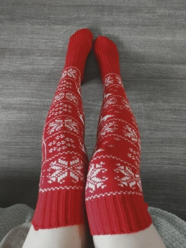 Женские рождественские чулки, зимние теплые вязаные чулки для женщин, новогодние вязаные длинные носки, Высокие гольфы до бедра