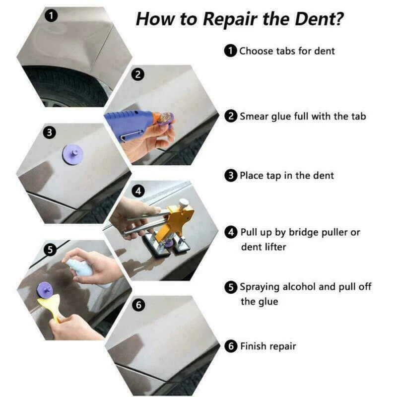 3) сдавливающий триггер для вмятин позволит вам контролировать и массировать дверную вмятину и повредить град до тех пор, пока не будут получены желаемые результаты.