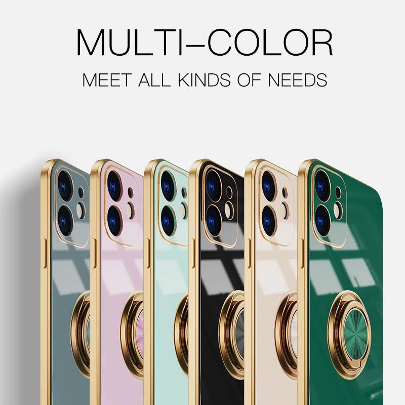 Luxury Plating Magnetic Ring Holder Cover For iPhone 13 12 11 Pro Max Mini Xs Max X Xr 8 7 Plus SE2 Shockproof Silicone Case