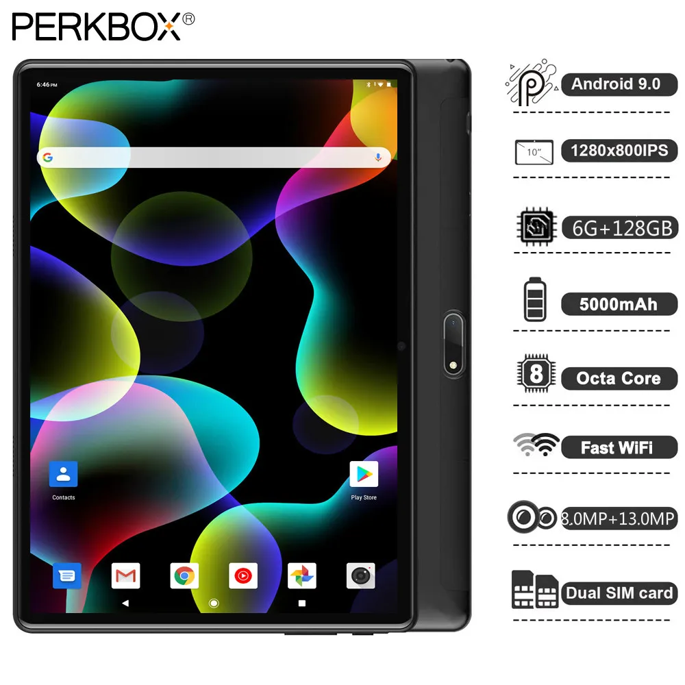 Планшет на Android 9,0, 6 ГБ + Гб, 10,1 дюйма, 10 ядер, две Sim-карты, Gps, 4G Lte