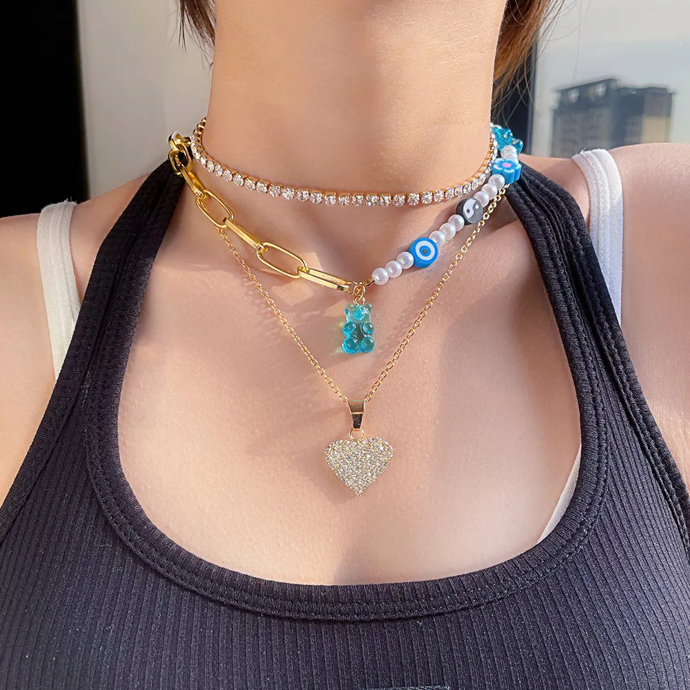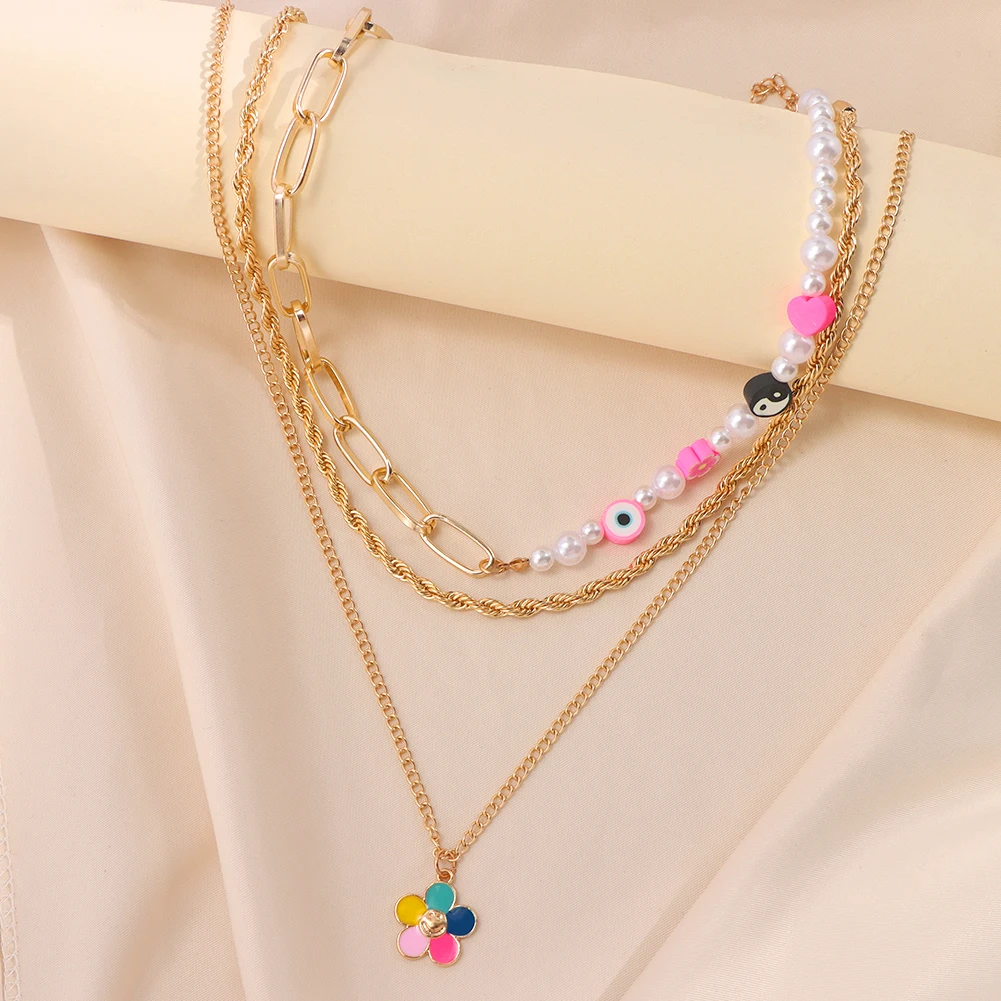 Ожерелье женское асимметричное с жемчугом и бусинами