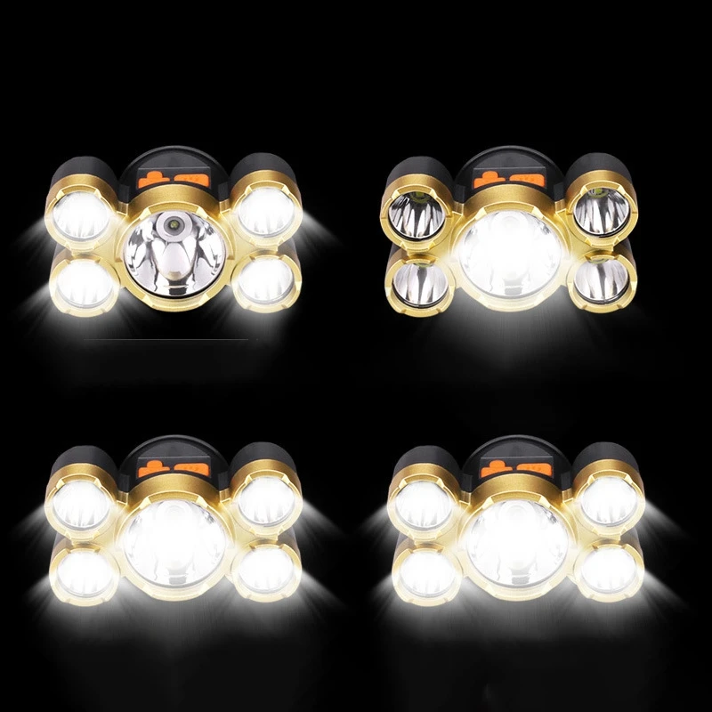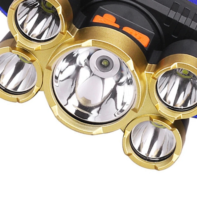 5-головная фара, суперъяркая перезаряжаемая рыболовная лампа, Большая дальность, суперъяркая Светодиодная лампа для майнинга, фонарик