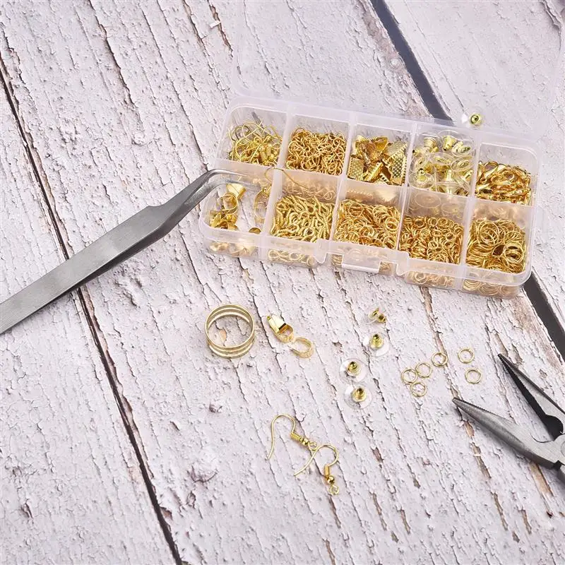 Набор фурнитуры для изготовления ювелирных изделий сделай сам, комплект инструментов для открытия колец, сережек, крючков, застежки-лобстер, бокс для ювелирных изделий