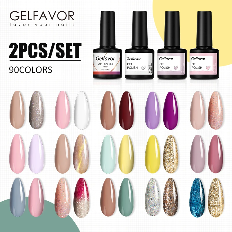Гель-лак для ногтей Gelfavor гибридные полуперманентные УФ отмачиваемые Лаки 2 шт.лот маникюрное базовое верхнее покрытие для гель-лака дизайн ногтей