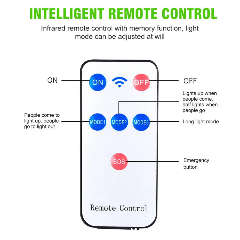 2. Датчик движения PIR: чувствительный светильник датчика PIR может обнаруживать движение людей от 3 до 5 м. Светильник будет автоматически включаться и выключаться.