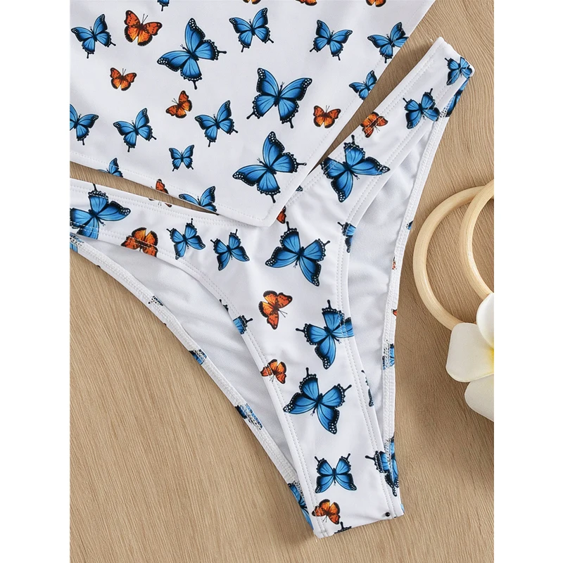 2021 сексуальный комплект бикини с лямкой через шею и принтом бабочки, купальник, женский купальник из двух частей, Летний Бикини с открытыми плечами, купальный костюм