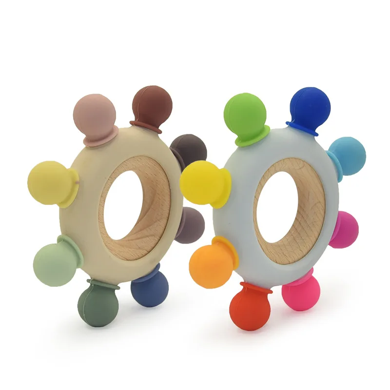 Силиконовый детский Прорезыватель для зубов, игрушки для руля, деревянные кольца, Прорезыватель для зубов, грызуны, Погремушки из Букового дерева, жевательные детские товары, прорезыватели для детей