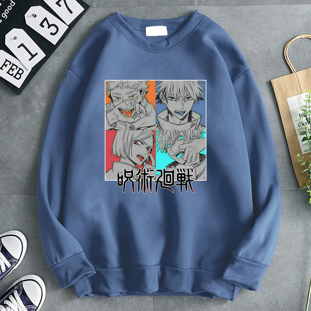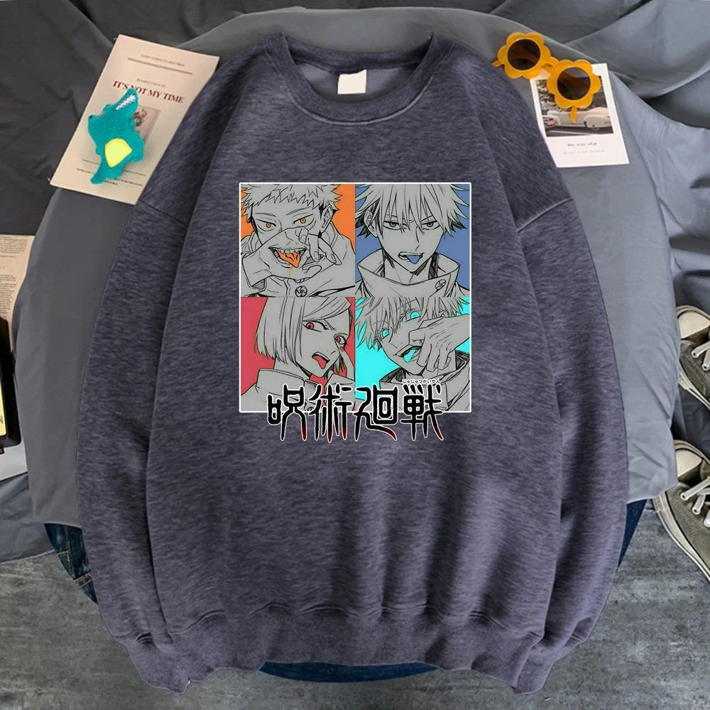 Пуловер мужской с японским аниме ююютсу кайсен, уличная модная Толстовка в стиле Харадзюку, корейский свитшот с длинным рукавом в стиле рок
