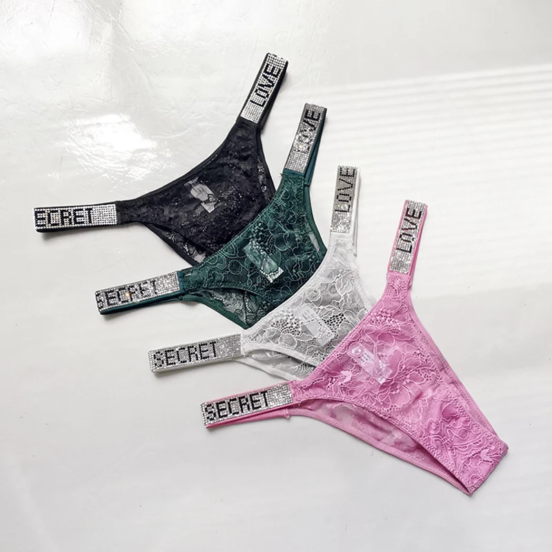 Стразы, сексуальные кружевные стринги для девушек, ультратонкие про...