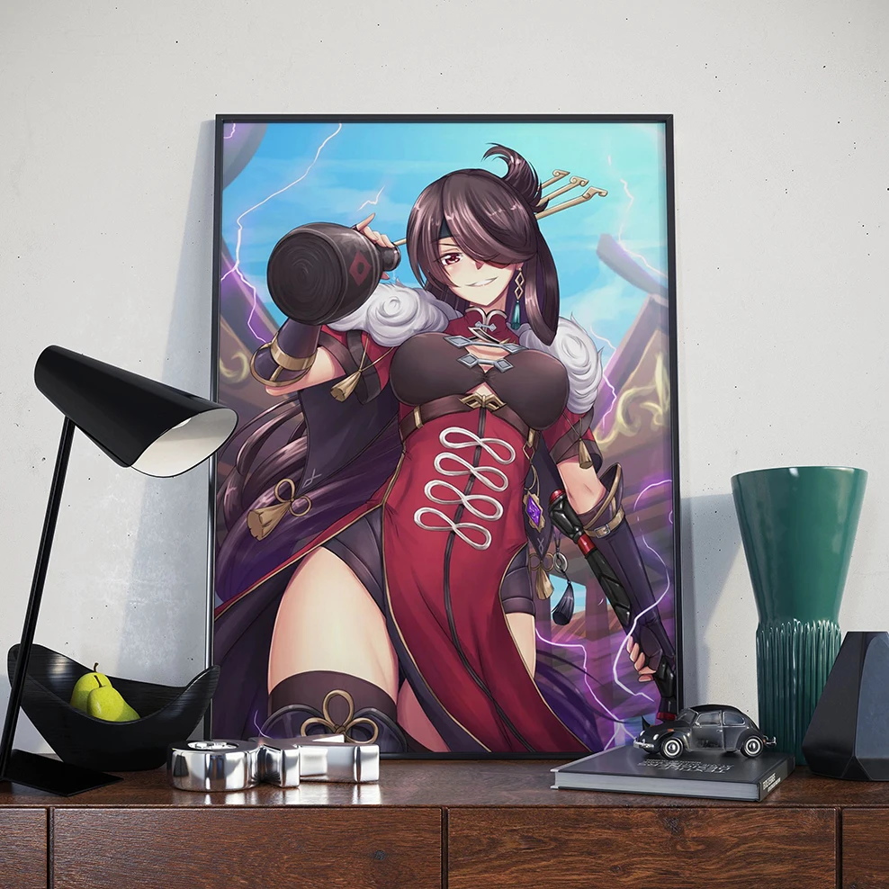 Настенная картина Genshin Impact с персонажами игры, картины с аниме девушкой, принты для спальни, гостиной, спальни, домашний декор, Холщовый плакат HD
