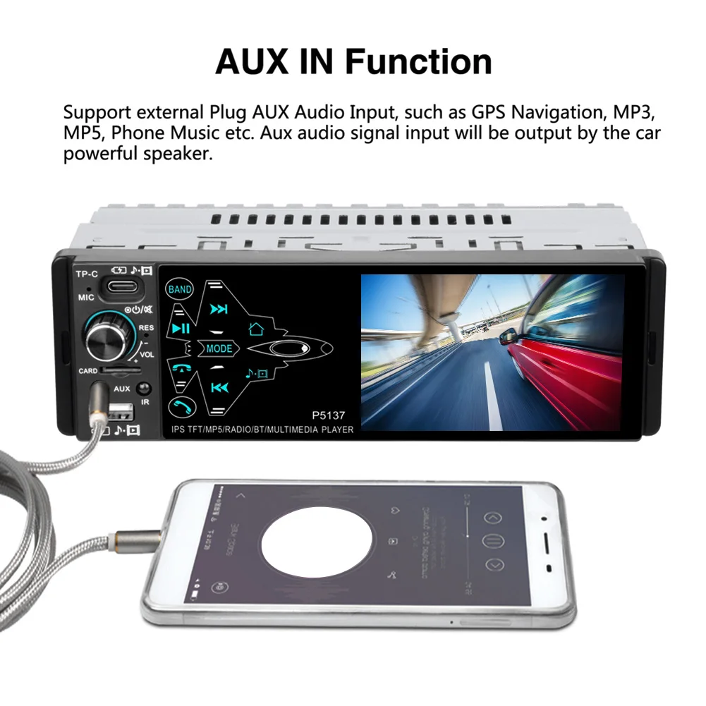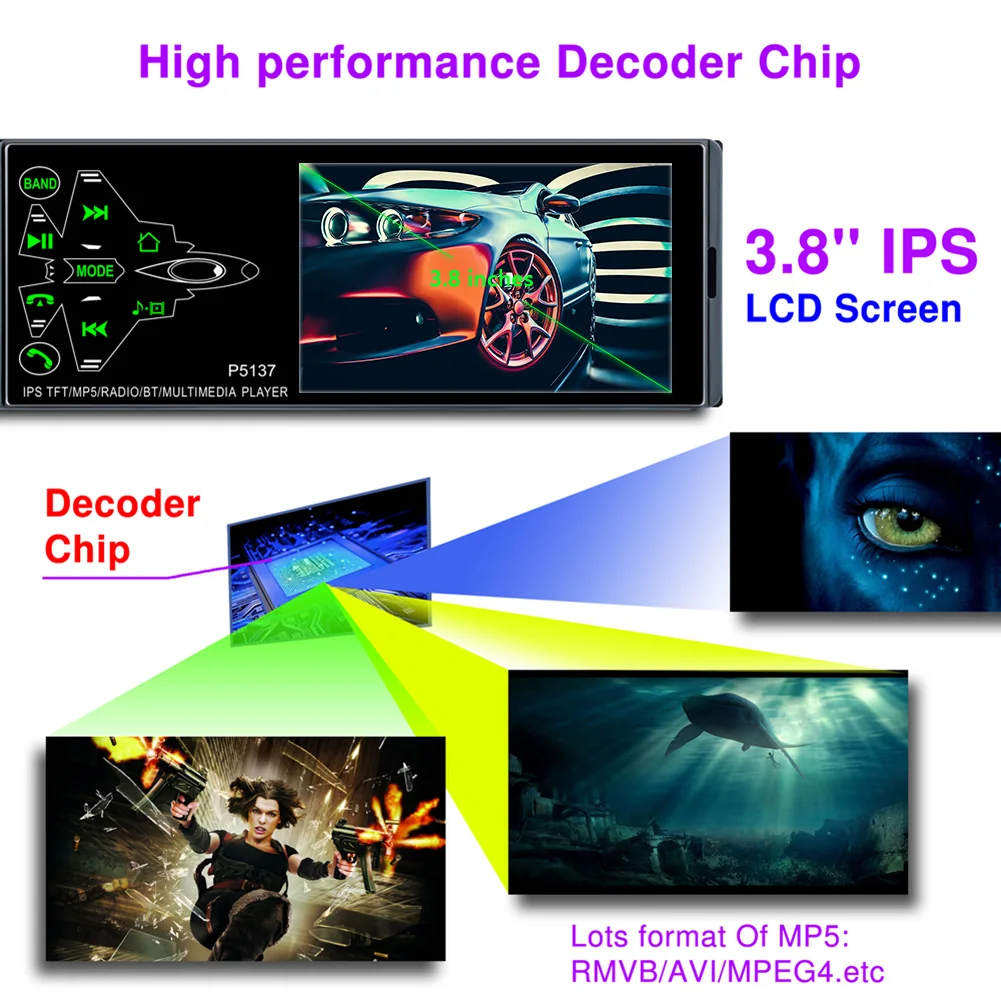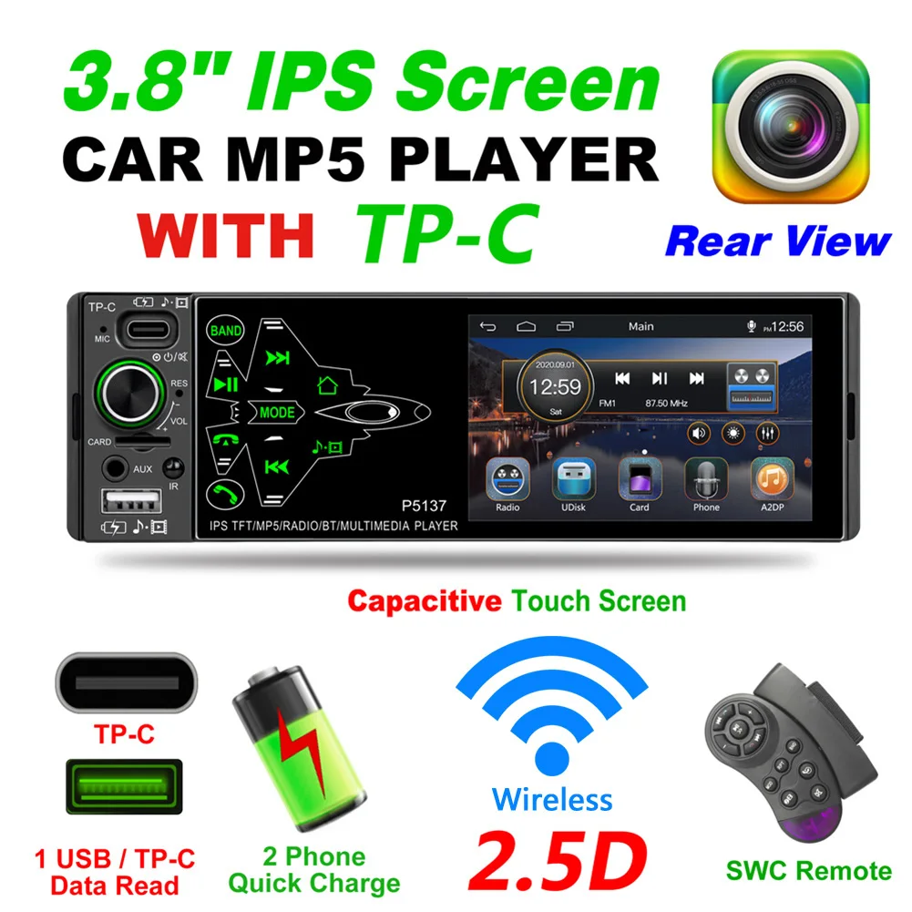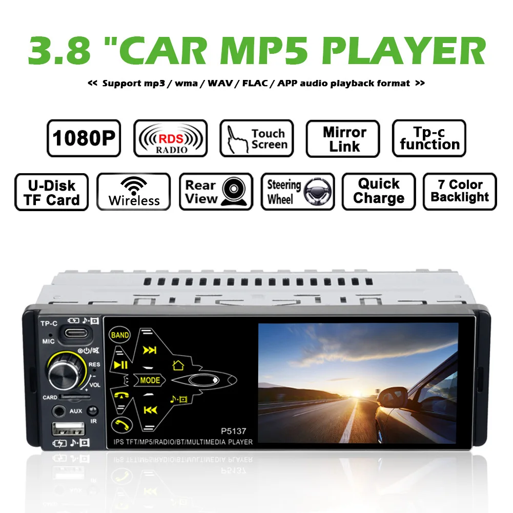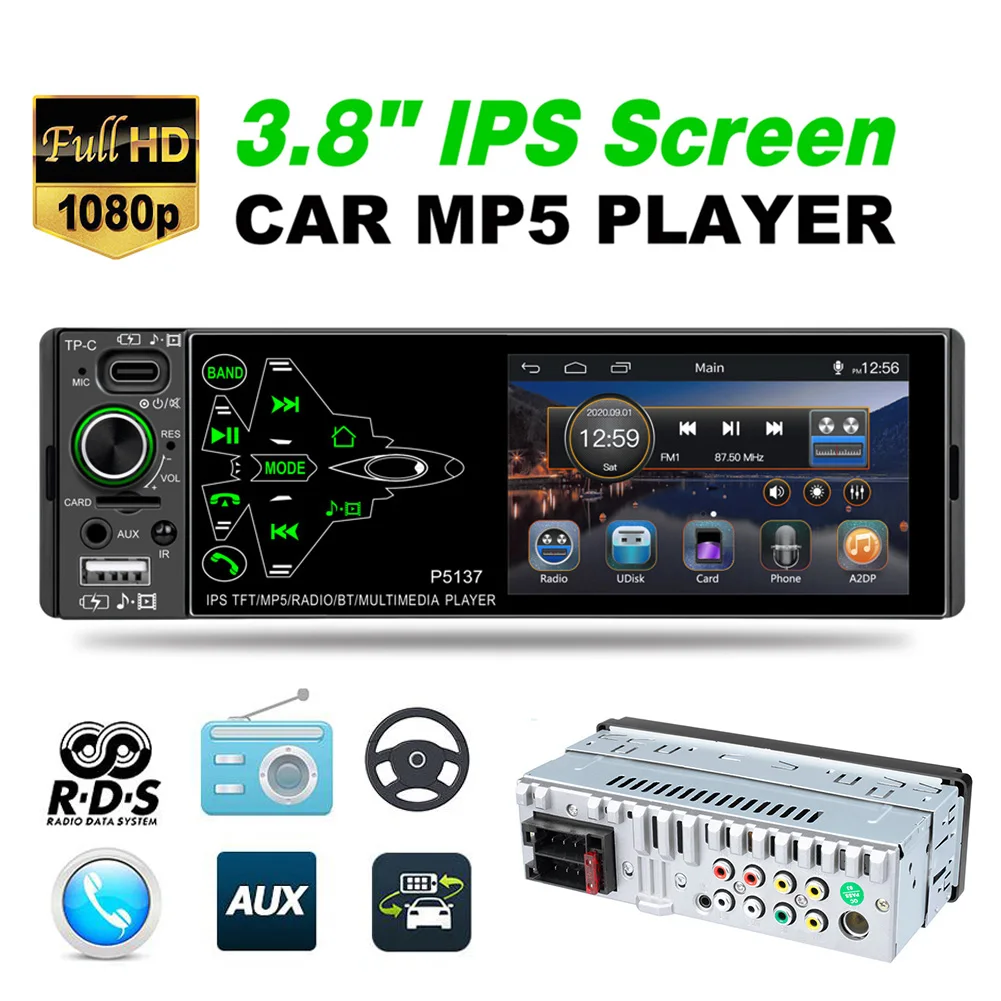 Автомобильный стереоприемник с сенсорным экраном 3,8 дюйма IPS 2.5D, FM-радио, 2USB, Bluetooth-совместимый автомобильный мультимедийный проигрыватель MP5 с аудио и видео