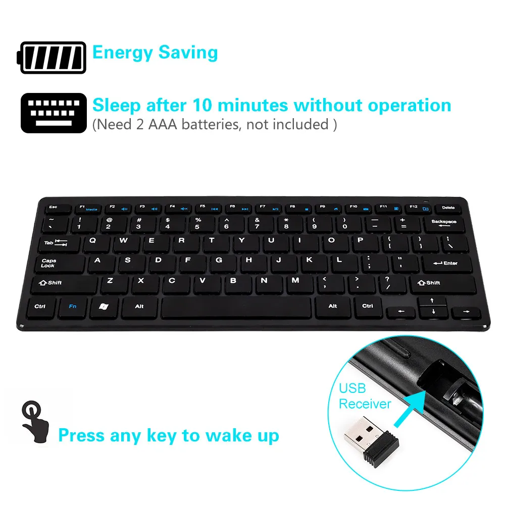Package Included2.4GHz Wireless Keyboard; Wireless Mouse; USB Receiver