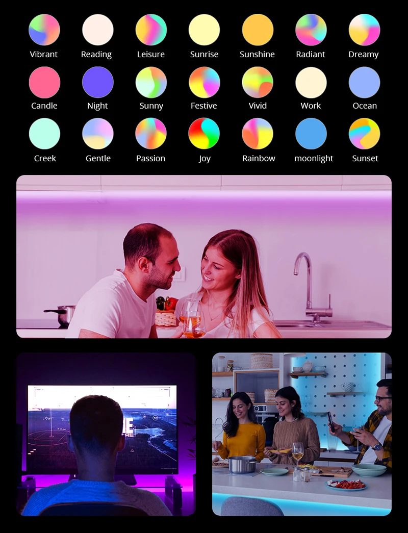 [Различные методы выбора] Цветовая палитра, цветовой круг, современный и классический цвет, различные способы выбора цвета. Наслаждайтесь бесконечными вариациями и синхронизацией в реальном времени, более 16 миллионов цветов.【Разнообразные Modes】 21 рекомендуемый режим сцены и до 8 DIY сцен, определите свою собственную сцену, чтобы лучше адаптировать ваши окружающие.【Работа с sensor】настройка сцены и создание атмосферы, когда вы дома.【Вкл/выкл на schedule】вместо управления с помощью пульта дистанционного управления и приложения Установите расписание, чтобы автоматически управлять светильник с полосками.IP65 IP65 Водонепроницаемость 】высокая гибкость, не стесняйтесь резать и приклеивать с легкостью.【Примечание. Вы можете подключить дополнительный светодиодный светильник 5050RGB для расширения SONOFF L2 до 10 м. Но убедитесь, что вы добавили адаптер питания и светодиодный Усилитель сигнала после того, как каждый светильник 5 м.