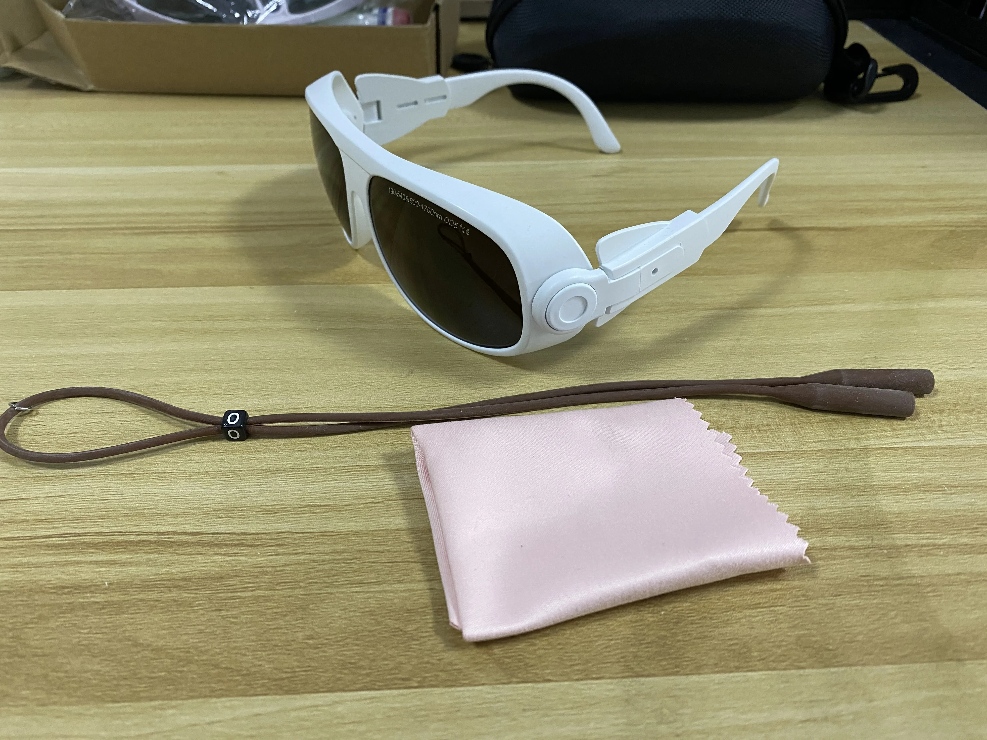 Эти очки изготовлены из поликарбоната и материалов, поглощающих лазер, широко используются в лазерной промышленности. Это профессиональные лазерные защитные очки, мы помечены на фильтре «190-540 & 800-1700nm O.D 5 + CE».
