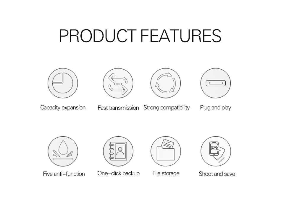 1.Разъем типа C и USB 3,0, дизайн 2-в-1, Легко передавать данные между компьютерами, планшетами и смартфонами.2. Не требует установки программного обеспечения3. Обеспечивает дополнительное хранилище данных для ваших Android устройств4. Портативный, легкий, высококачественный металлический чехол5. Твердотельное хранилище, ударопрочное и электромагнитное6. Держите свой цифровой мир в кармане