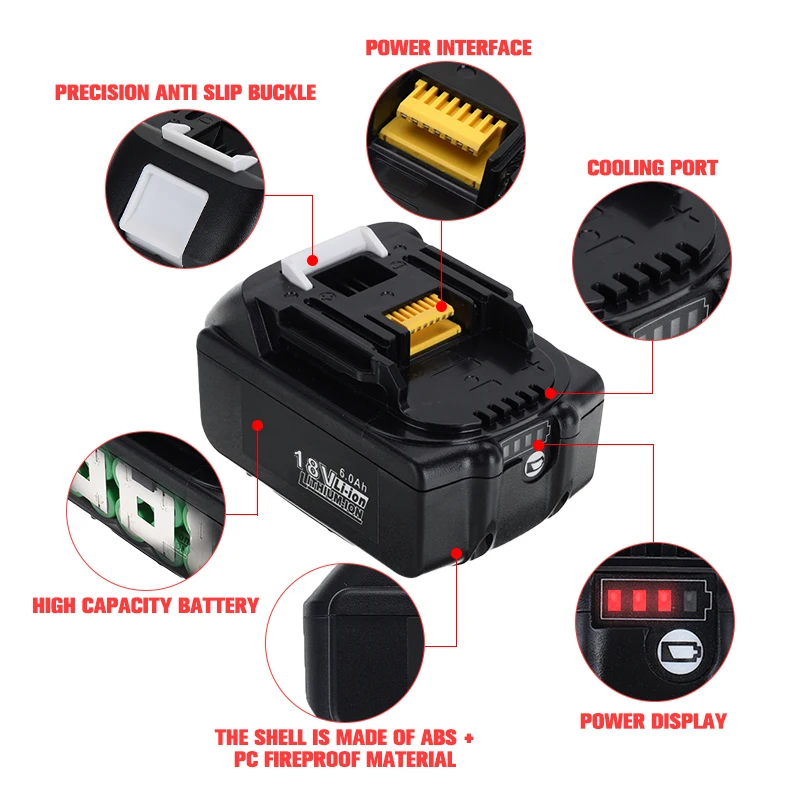 Перезаряжаемая литий-ионная аккумуляторная батарея для Makita 18 в 6Ah BL1840 BL1850 BL1830 BL1860B LXT400
