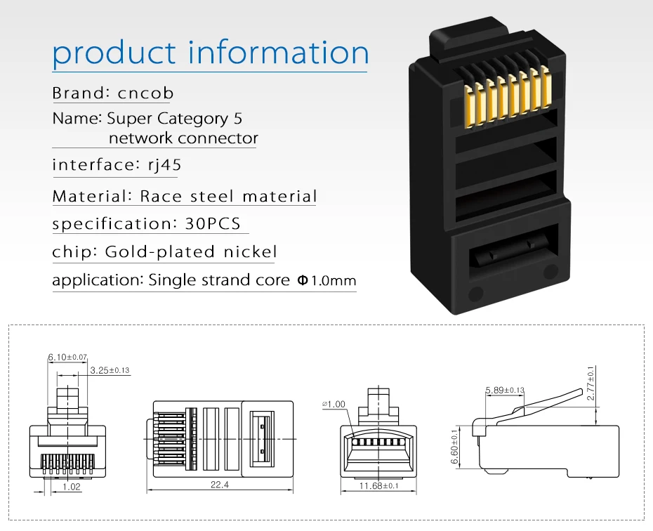 Модульный разъем для кабеля Ethernet cncob Cat5E 8P8C, Обжимной Сет...
